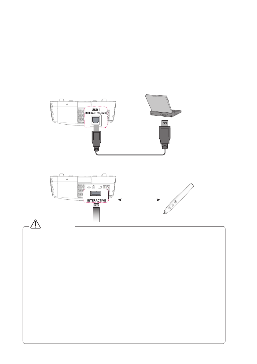 The interactive pen communicates with the interactive a projector's interactive dongle.