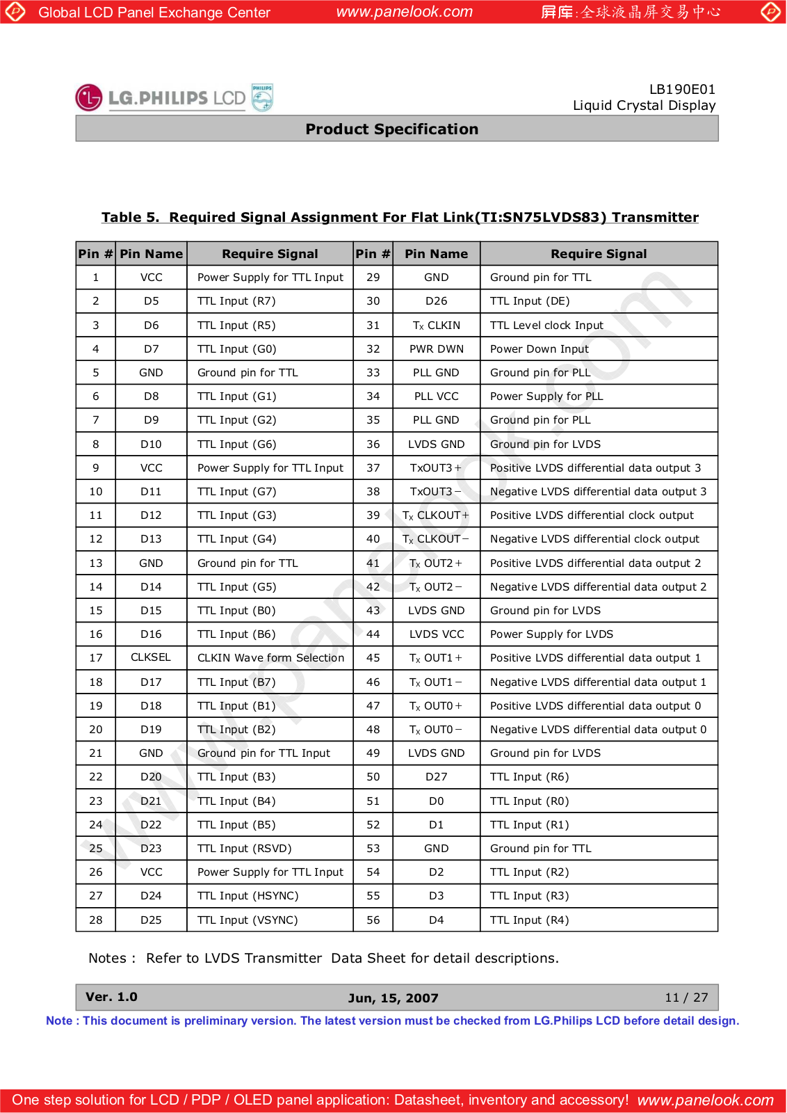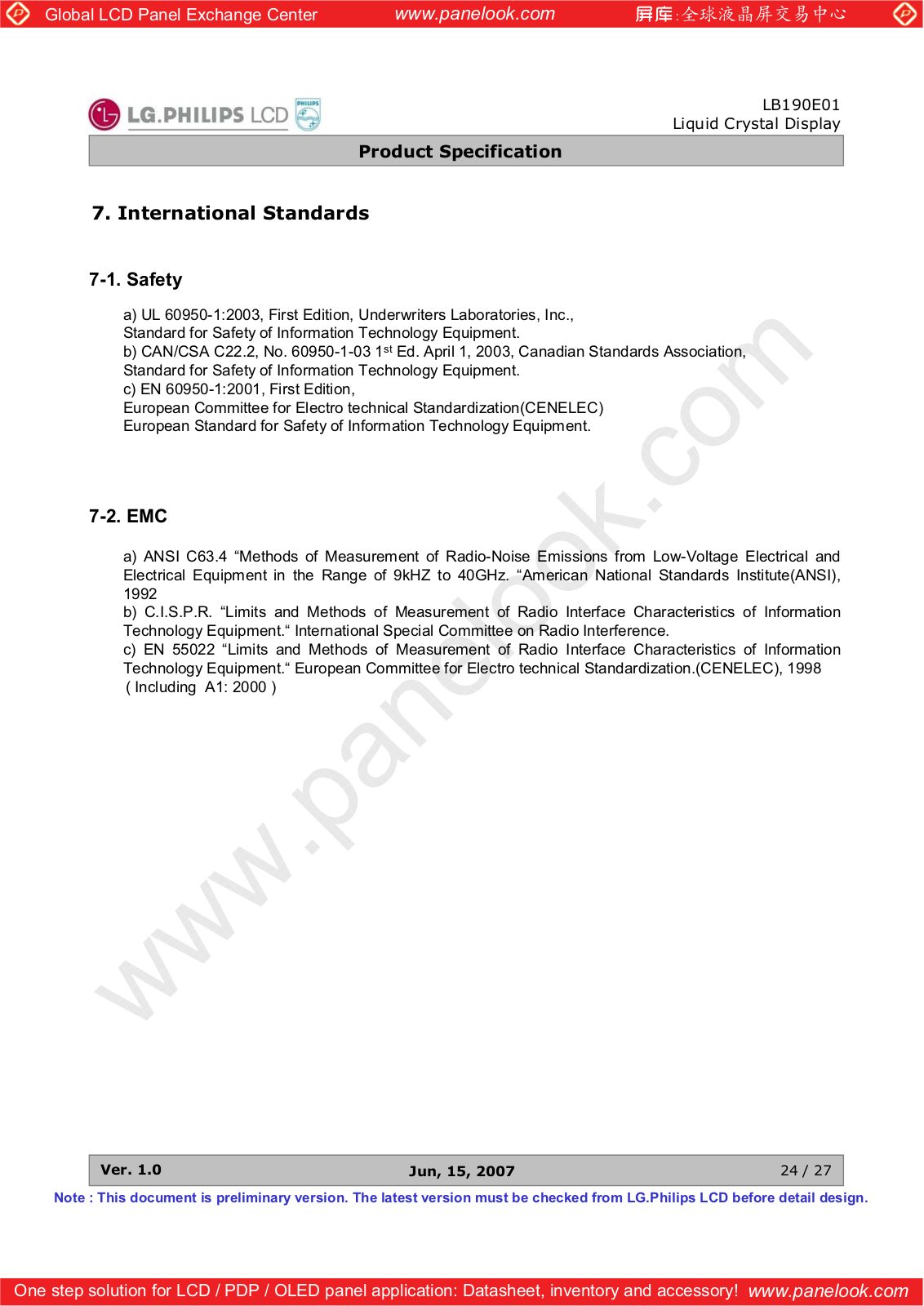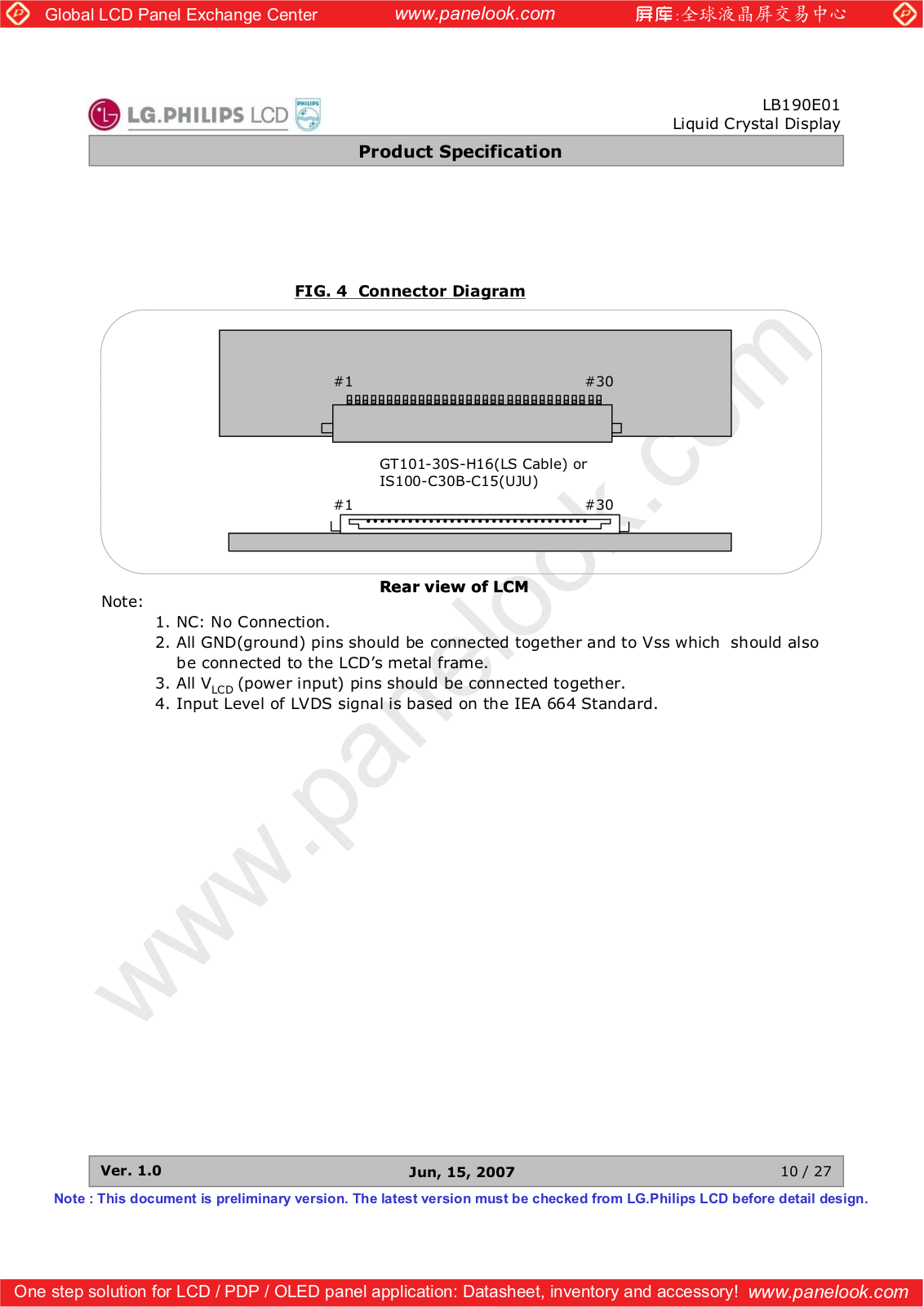 LG Display LB190E01-SL01 Specification