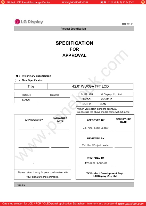 LG Display LC420EUE-SEM2 Specification