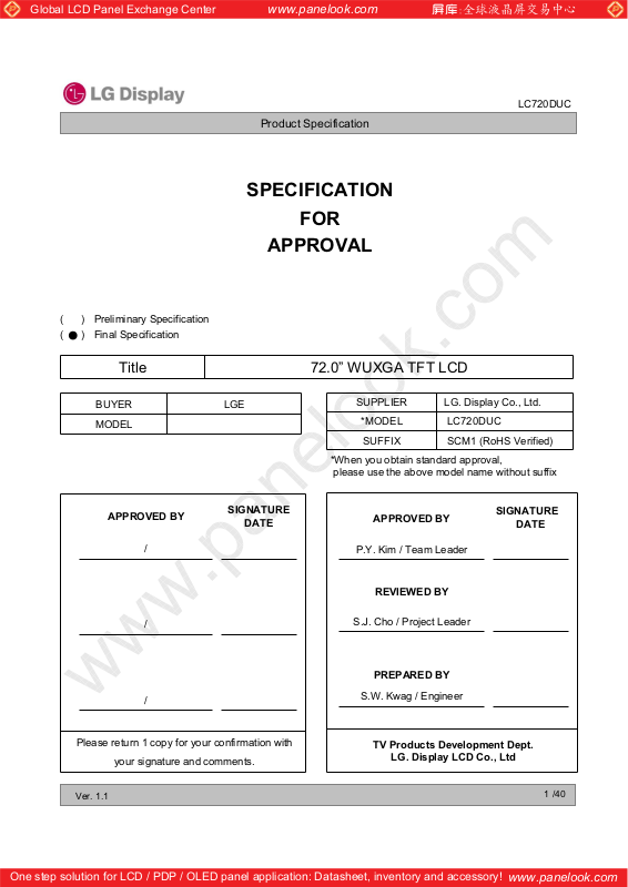 LG Display LC720DUC-SCM1 Specification