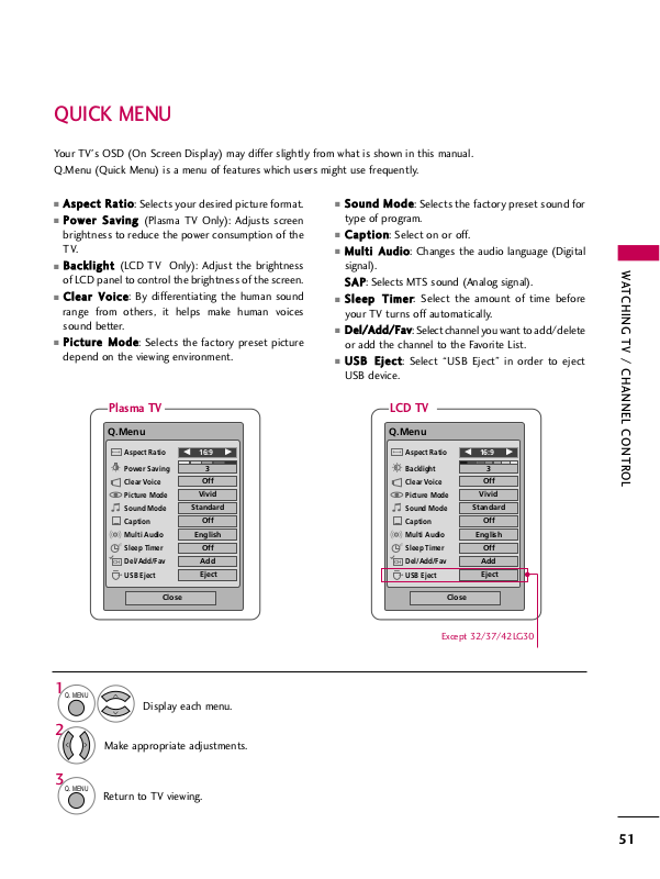 Your TV's OSD (On Screen Display) may differ slightly from what is shown in this manual. Q.Menu (Quick Menu) is a menu of features which users might use frequently.