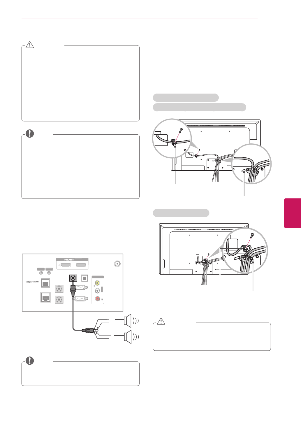 Make sure that the screws are fastened tightly. (If they are not fastened securely enough, the TV may tilt forward