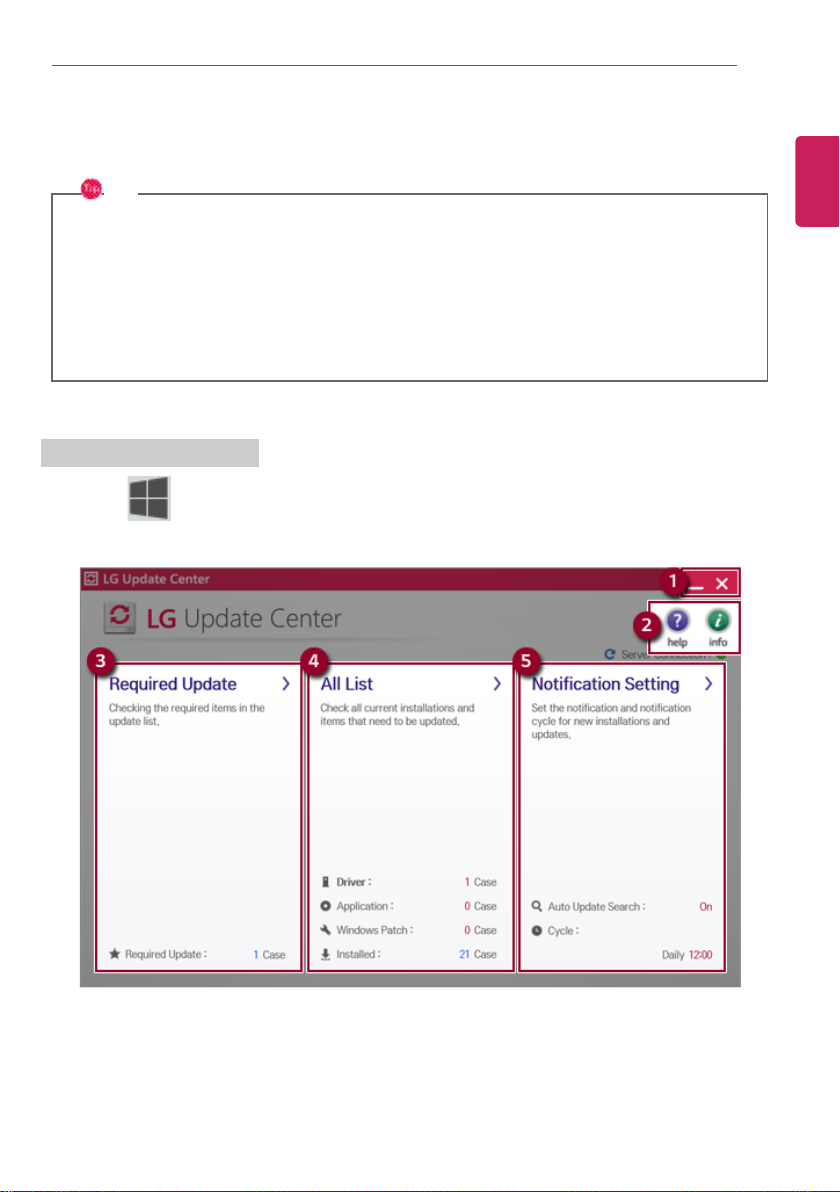 1 Select the [] button > [LG Sof tware] to run [LG Update Center].