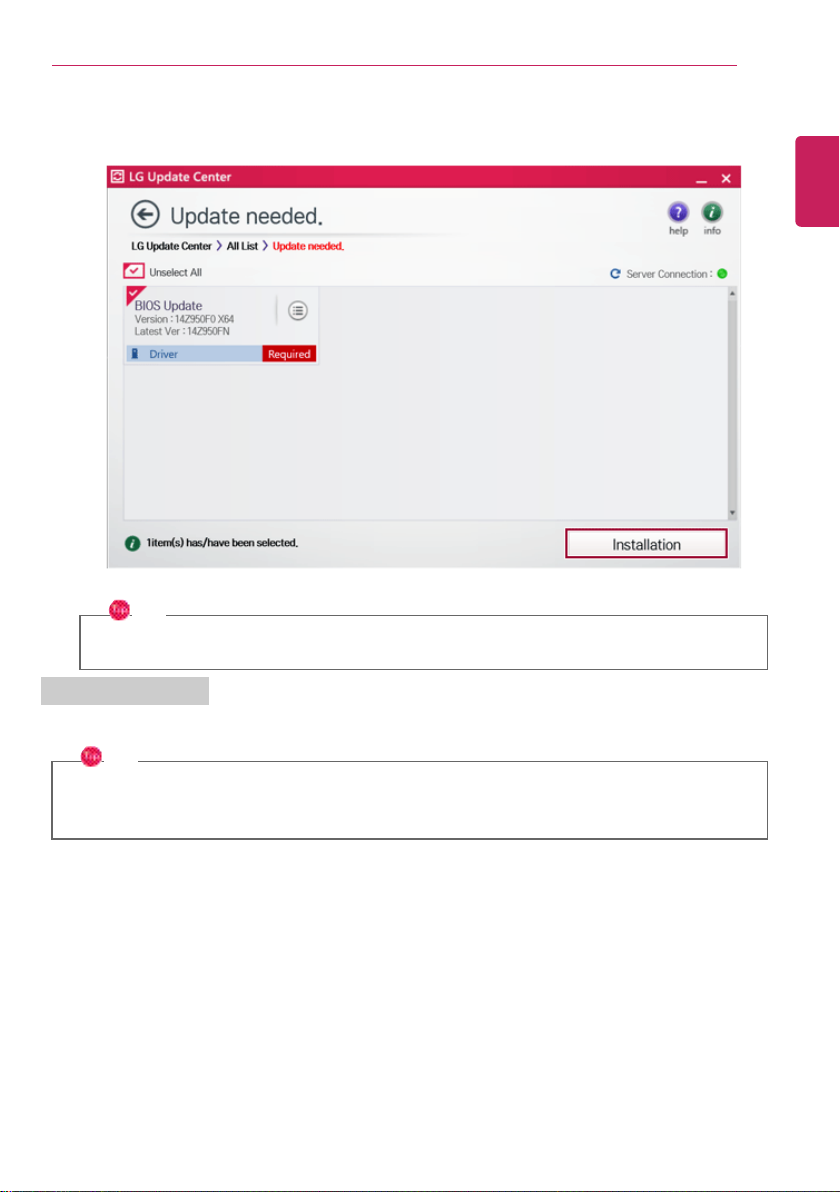 2 Select [Required Update] or [All List] to install the driver.