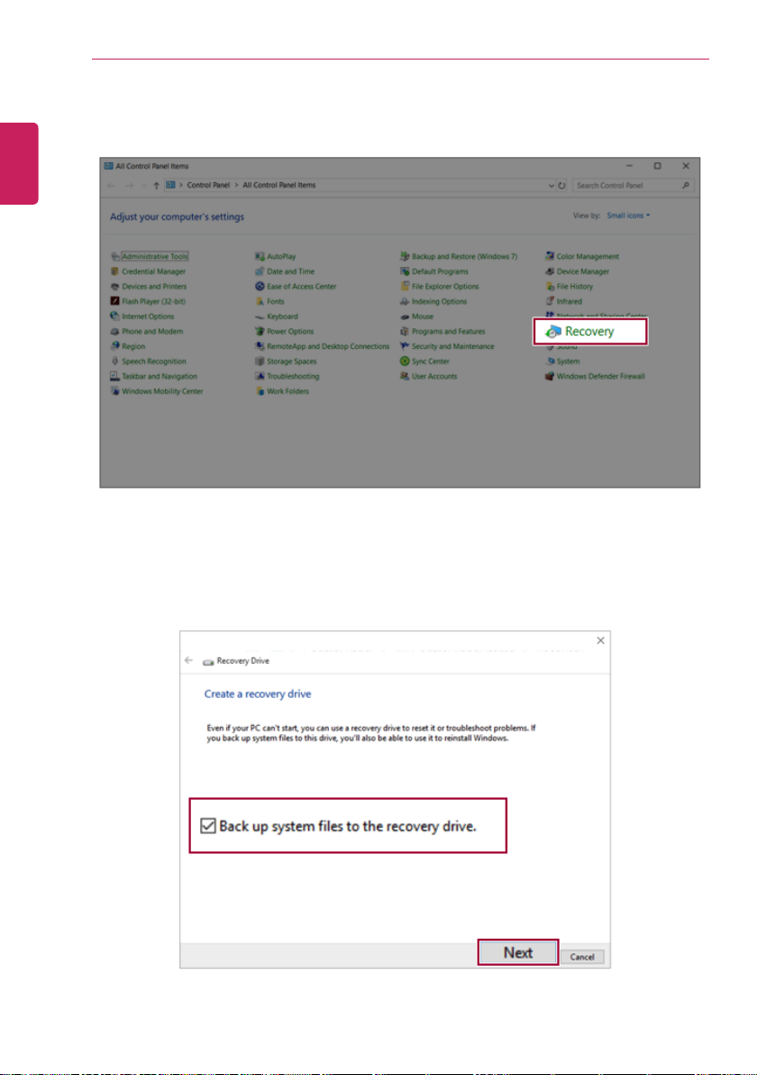 1 Connect the recovery drive to the USB port of the PC.