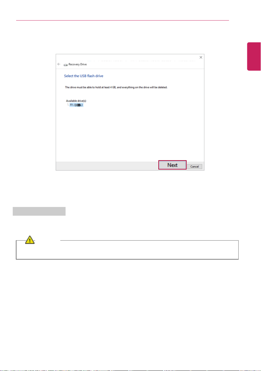 4 Select the USB flash drive to use and press [Next] to create a recovery drive.