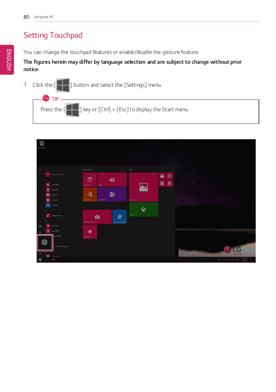 Use the touch panel for a faster and more convenient use of the PC. All gestures provided by Windows
