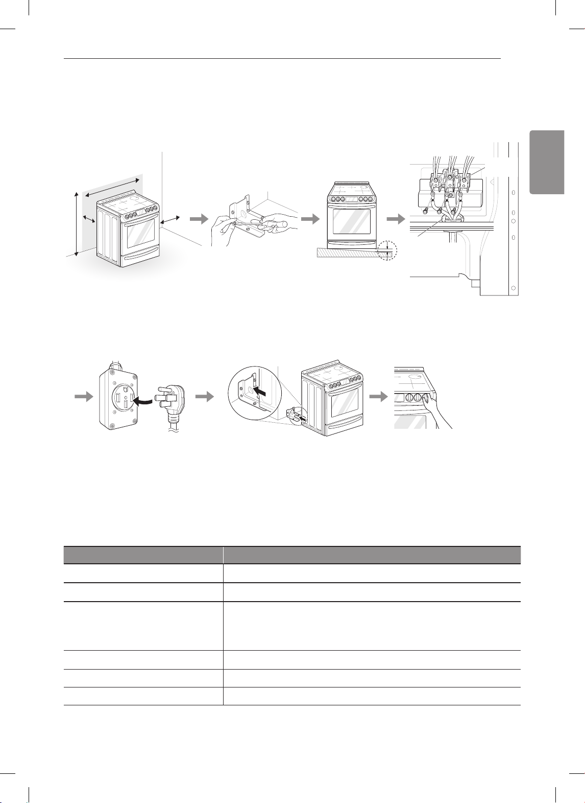 Instale el dispositivo antivuelcoNivele la cocinaConecte la cocina