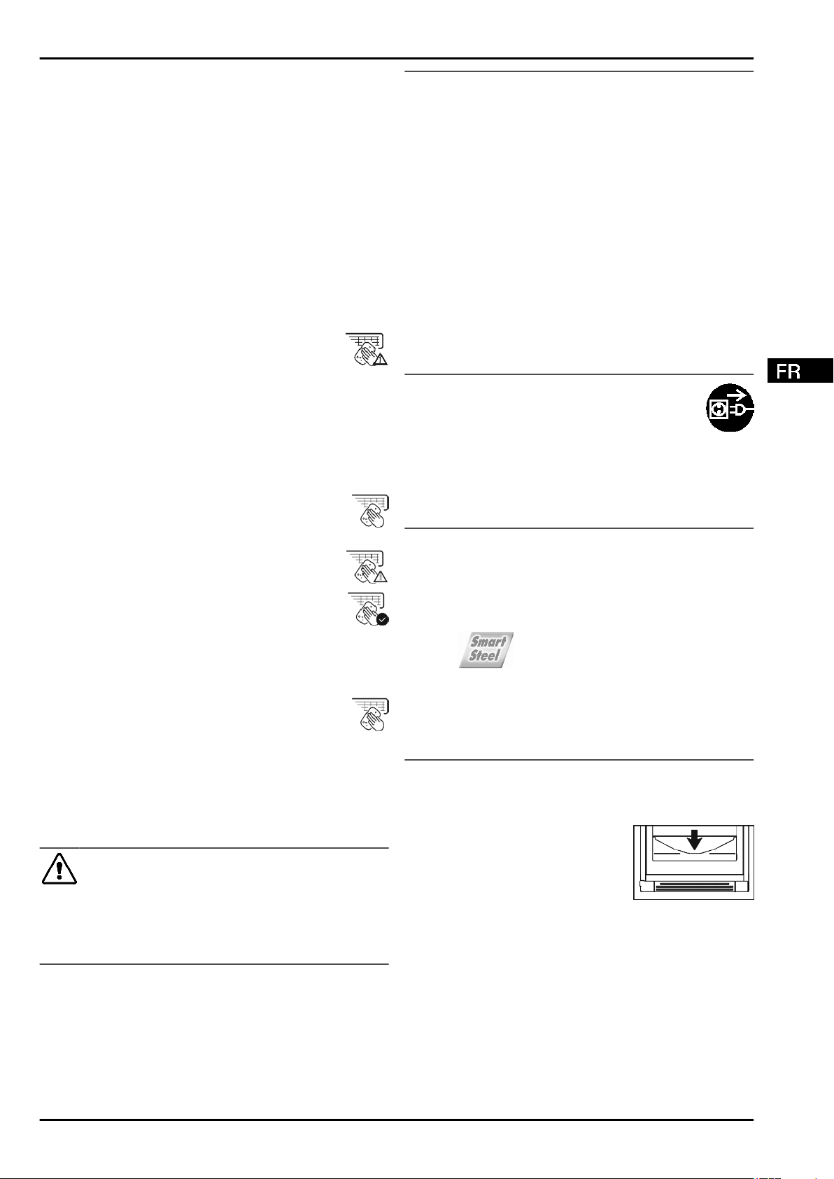 sonore et un message à l'écran. Le signal sonore s'intensifie en cas de message d'erreur et retentit plus fort. Il