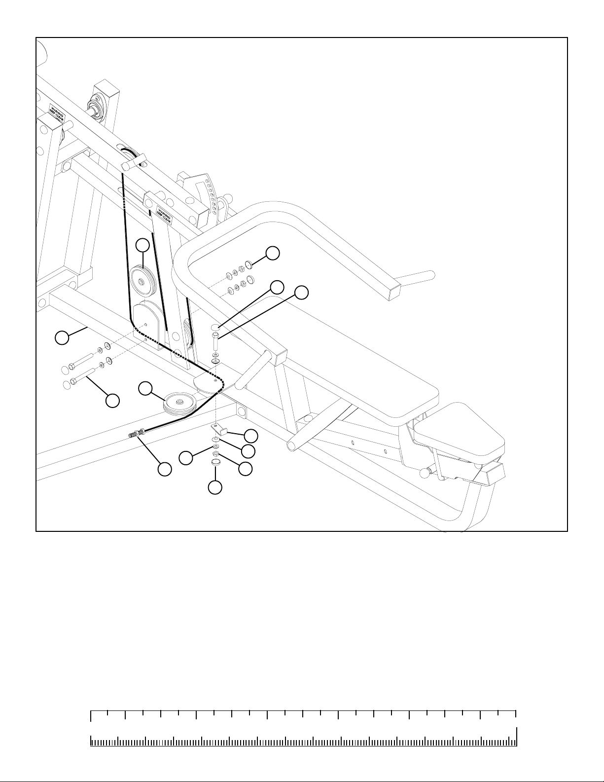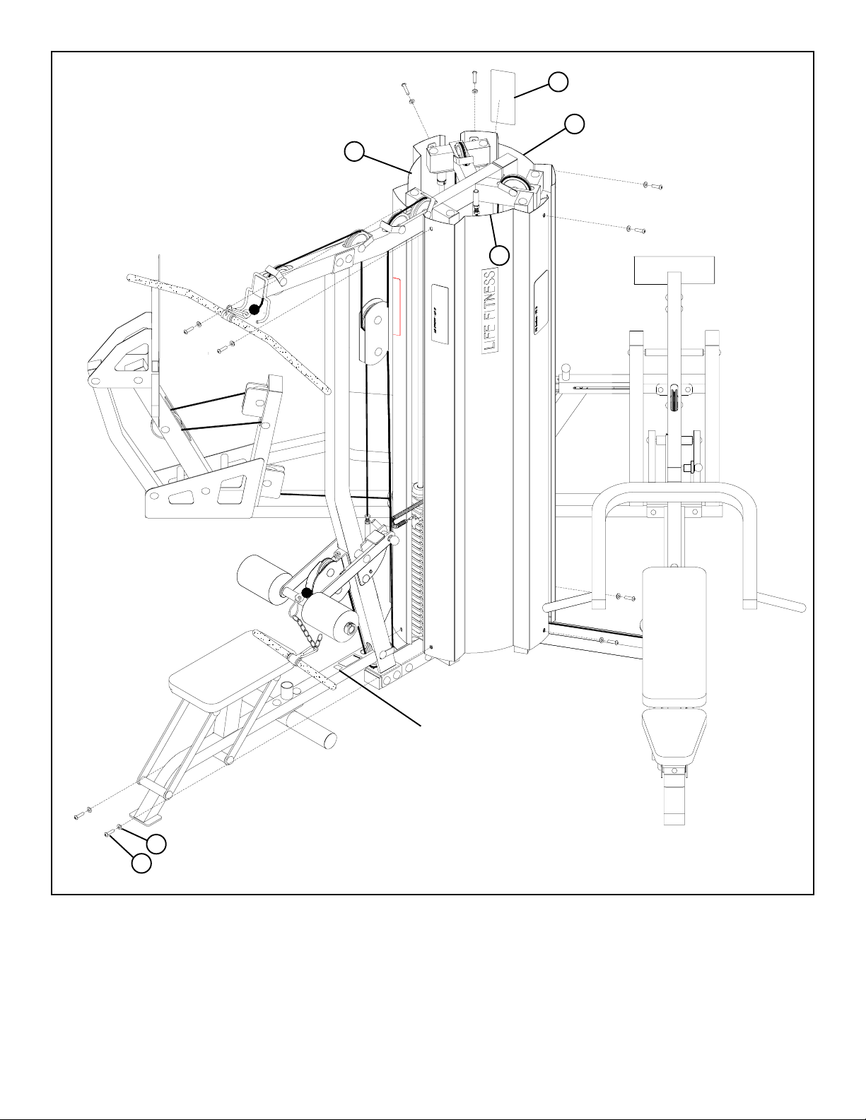 • Route the LEG PRESS CABLE (93) under the weight stack and through the bracket on the TOWER BASE (10) and assemble one