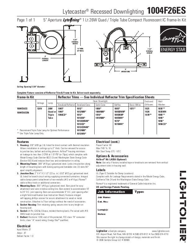 to junction box, ballast and ceiling plenum. AirSeal® housing minimizes