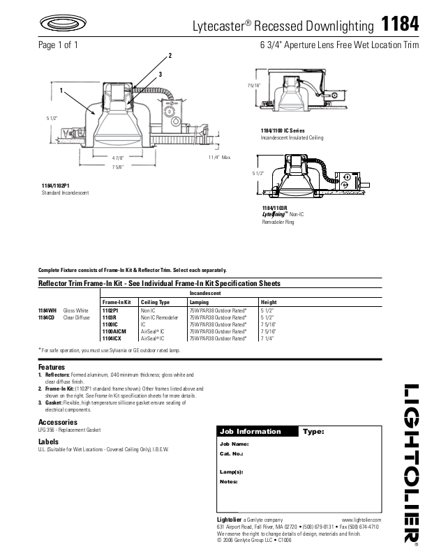 Page 1 of 1 6 3/4" Aperture Lens Free Wet Location Trim