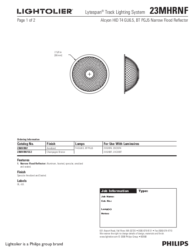 Page 1 of 2 Alcyon HID T4 GU6.5, BT PGJ5 Narrow Flood Reflector
