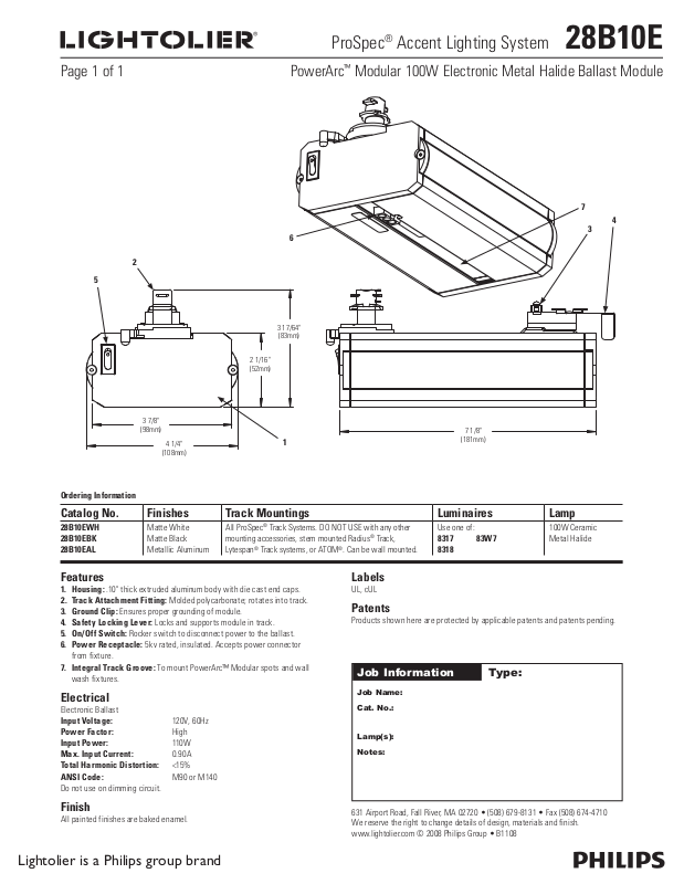 Page 1 of 1 PowerArc™ Modular 100W Electronic Metal Halide Ballast Module
