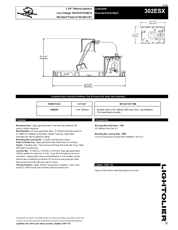 302ESX 3 3/4" (95mm) Accepts most 3 3/4" (95mm) 300 serie trims ; see Reflector