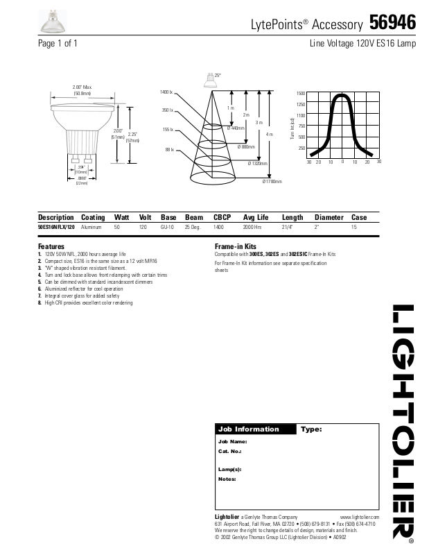 50ES16NFLX/120 Aluminum 50 120 GU-10 25 Deg. 1400 2000 Hrs 21/4" 2" 15