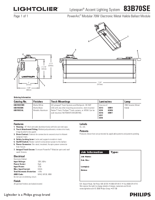 Page 1 of 1 PowerArc™ Modular 70W Electronic Metal Halide Ballast Module