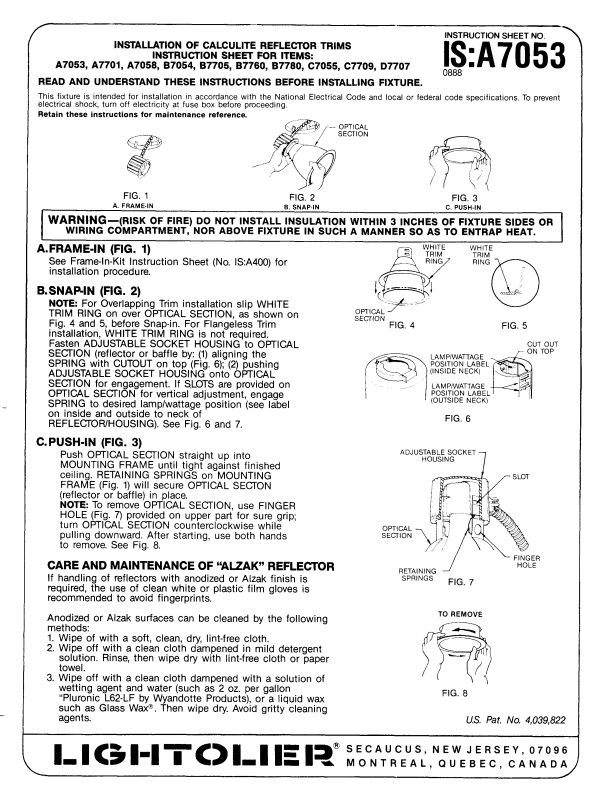 INSTALLATION OF CALCULITE REFLECTOR TRIMS