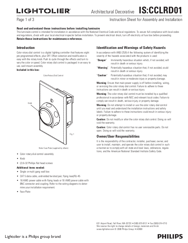 Wiring the color rotary dial control (refer to Fig. 3 wiring diagram)