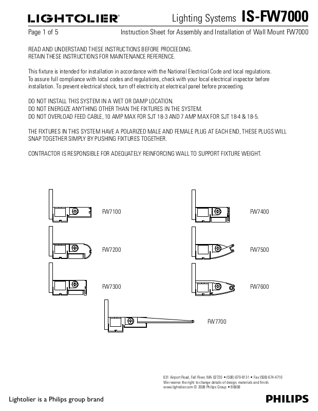 Lightolier FW7200, FW7100, FW7400, FW7300, FW7600, FW7500, FW7700, IS-FW7000 User Manual