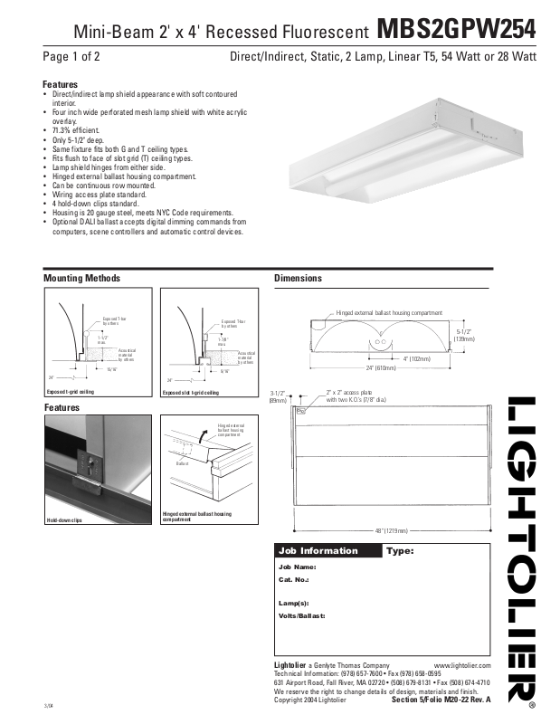 Copyright 2004 Lightolier Section5/Folio M20-22 Rev. A