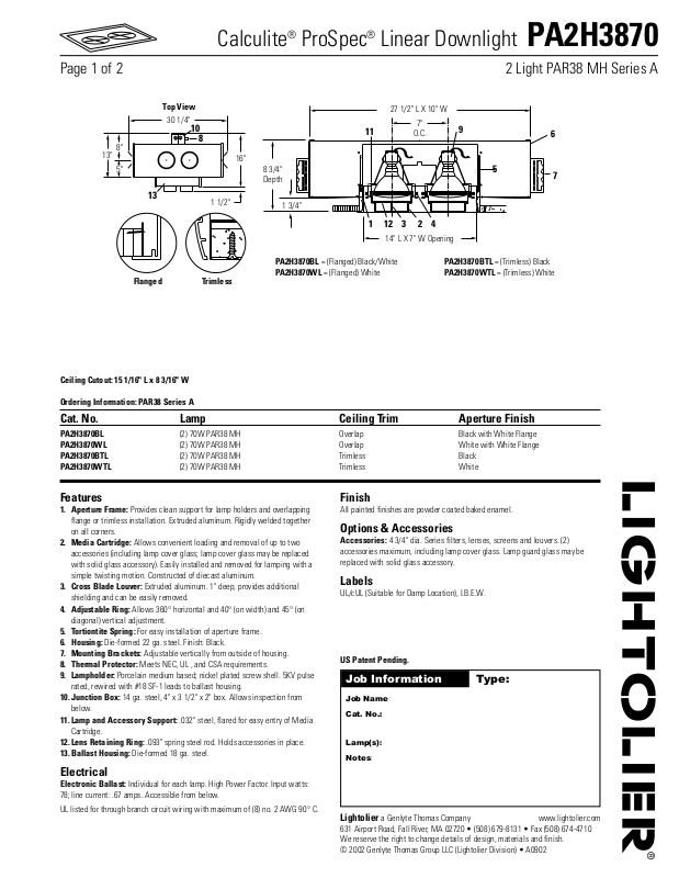 © 2002 Genlyte Thomas Group LLC (Lightolier Division) • A0902