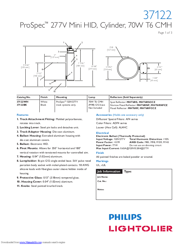 8. Lampholder: Bi-pin G12 single-ended base. 5kV pulse rated