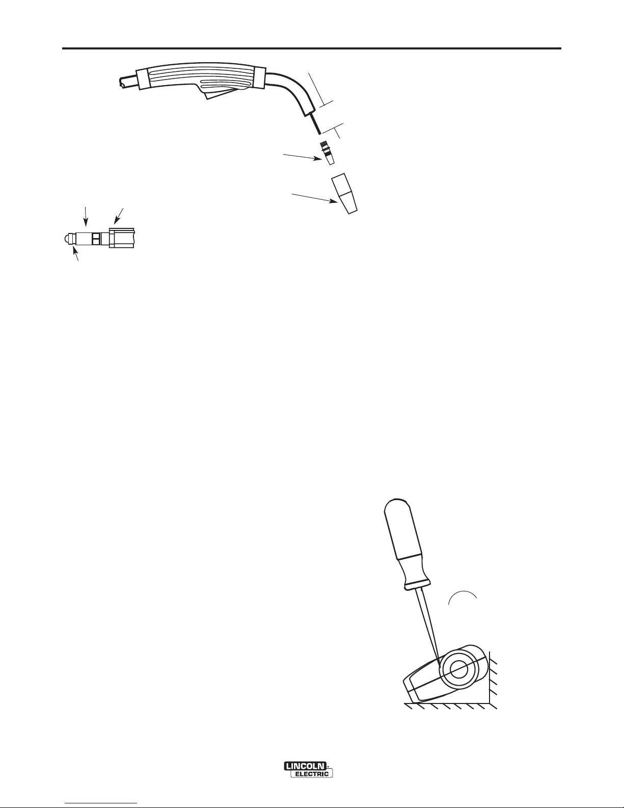 3. Check gun tip for wear or dam­age and proper size – Replace.