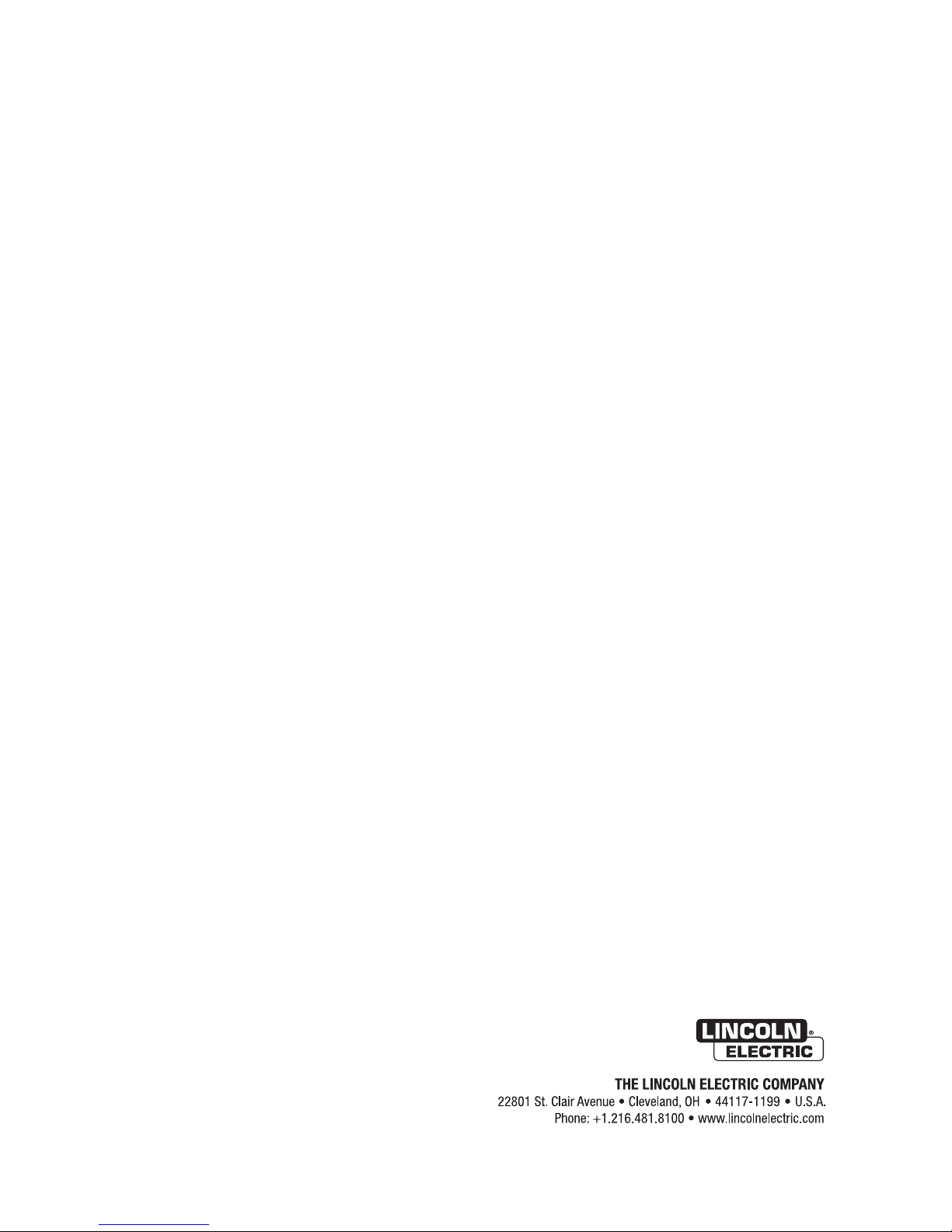 Subject to Change – This information is accurate to the best of our knowledge at the time of printing. Please refer to www.lincolnelectric.com for any updated information.