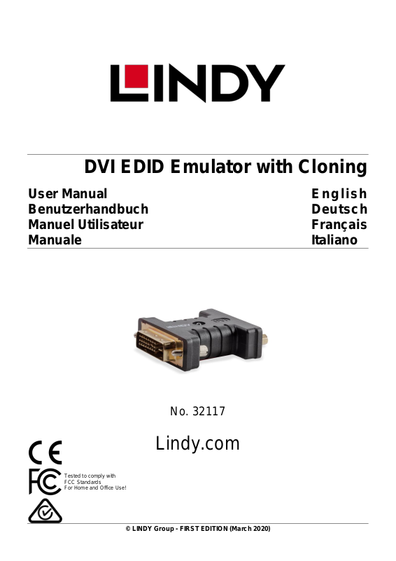 EDID Emulator mit Klonfunktion unterliegt einer 2-Jahres LINDY Herstellergarantie und lebenslangem