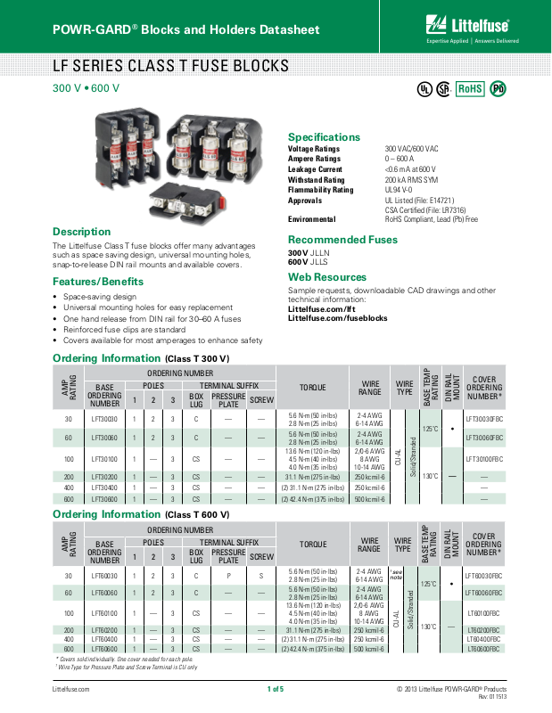 600 LFT30600 1 — 3 CS — — (2) 42.4 N-m (375 in-lbs) 500 kcmil-6 —
