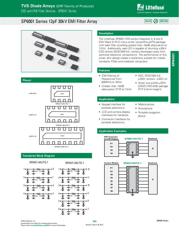 The Littelfuse SP6001 SPA series integrates 4, 6 and 8