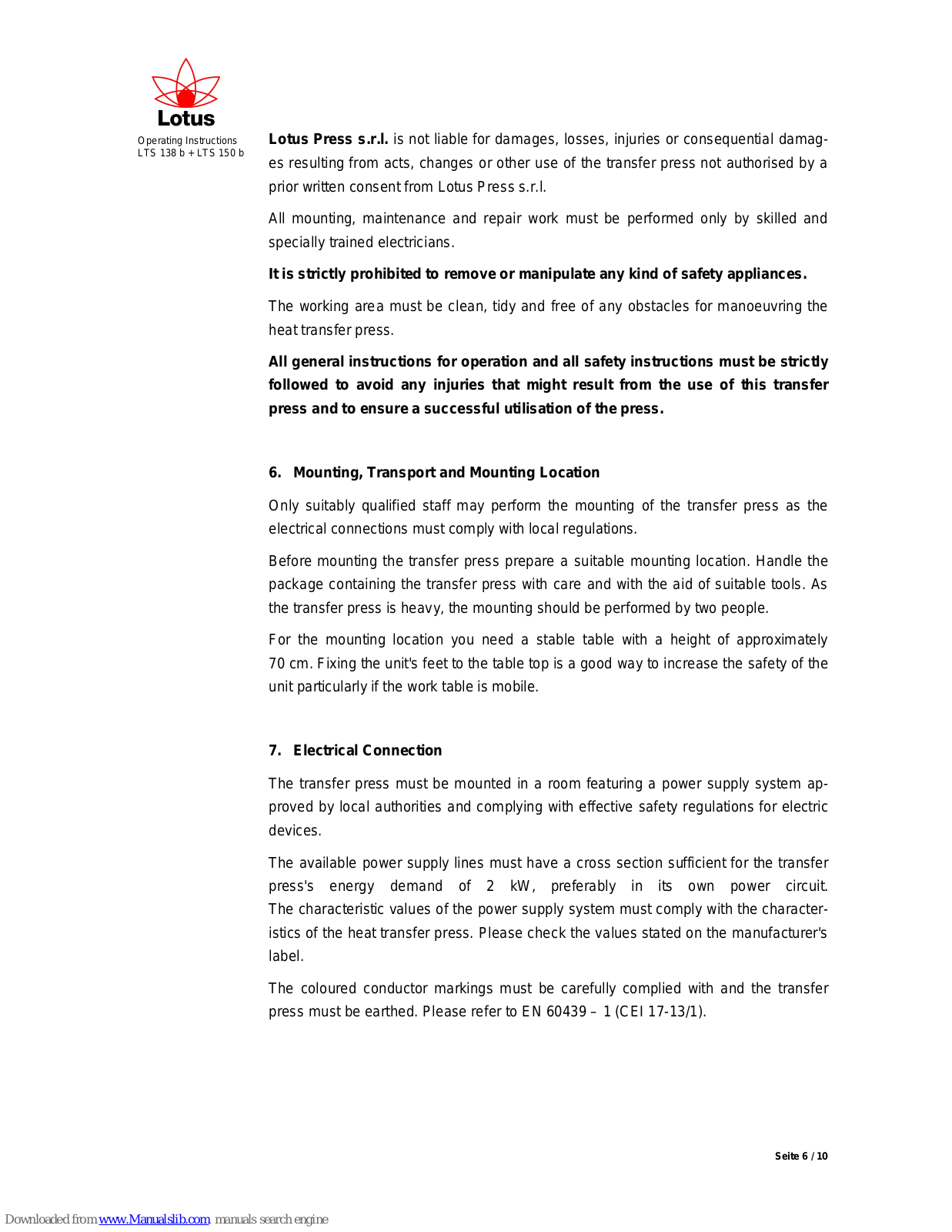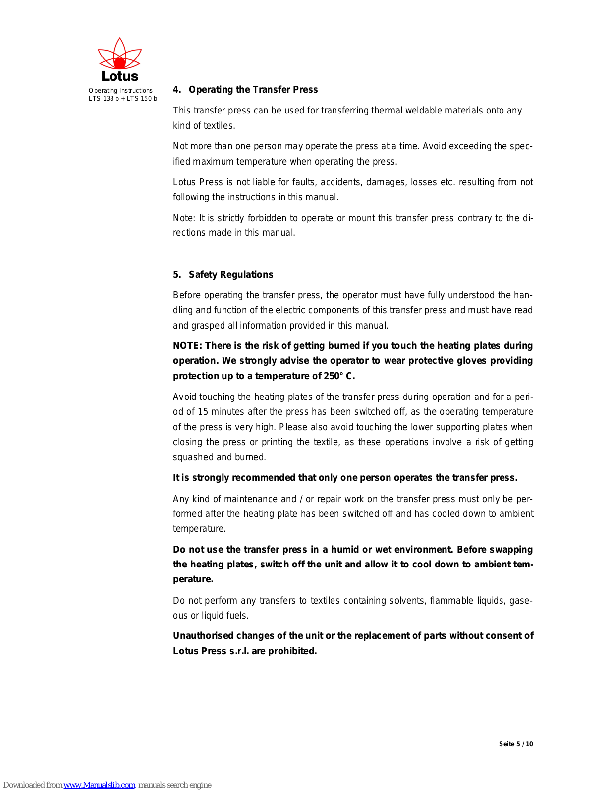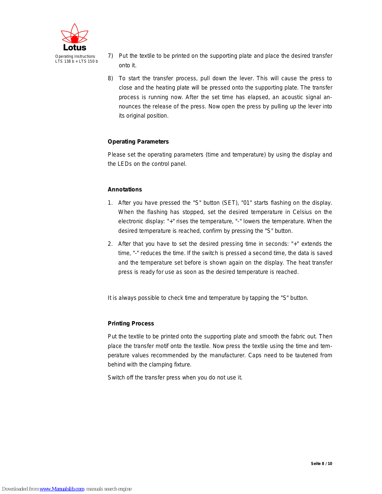 Lotus LTS 138 b, LTS 150 b, LTS 138, LTS 140, LTS 145, LTS 150 Operating Instructions Manual