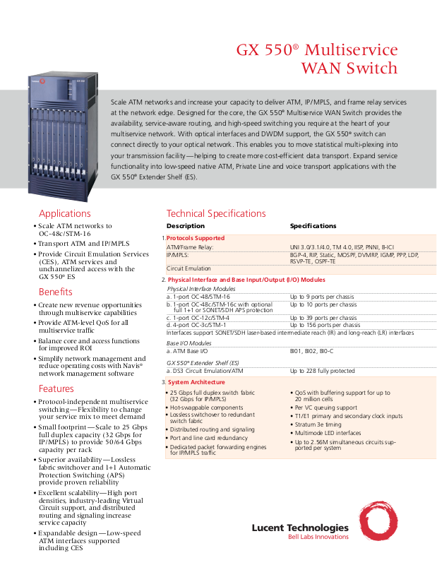at the network edge. Designed for the core, the GX 550®Multiservice WAN Switch provides the