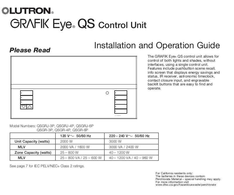 GRAFIK Eye® QS Control Unit Installation and Operation Guide 3