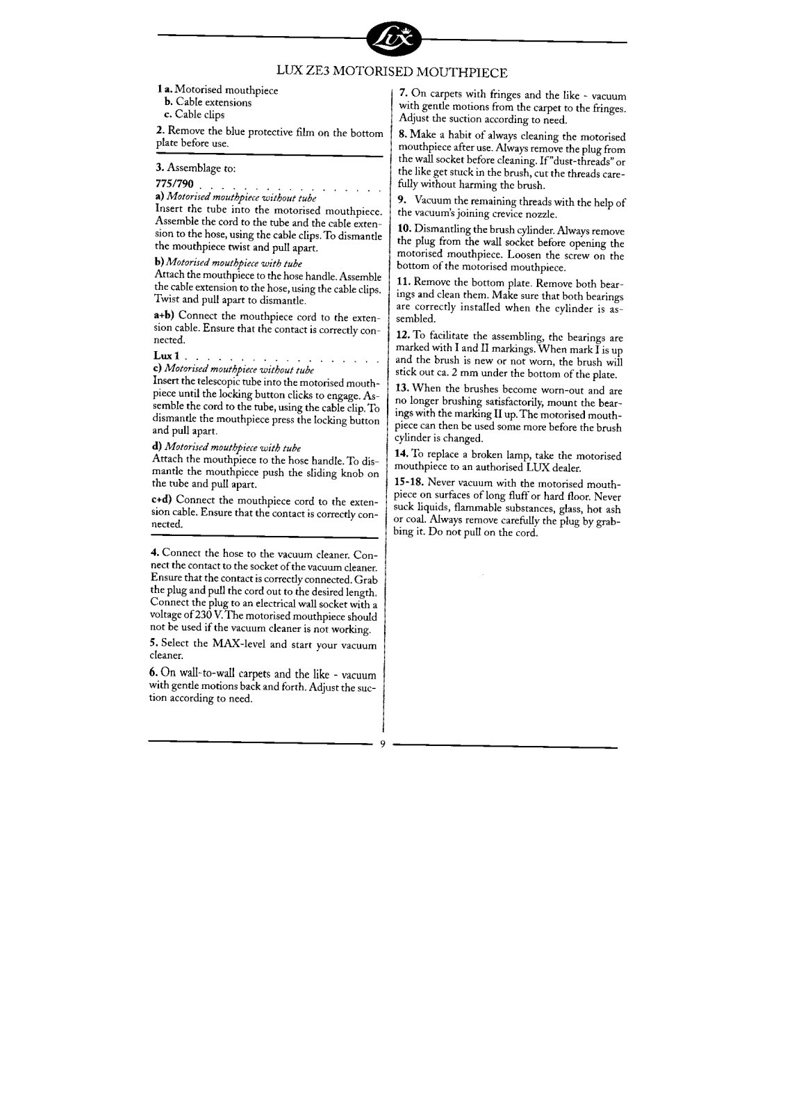 Lux ZE3.1 230V, ZE3 230-240V, ZE3.1 230-240V, ZE3 230V, ZE3 100-110V User Manual