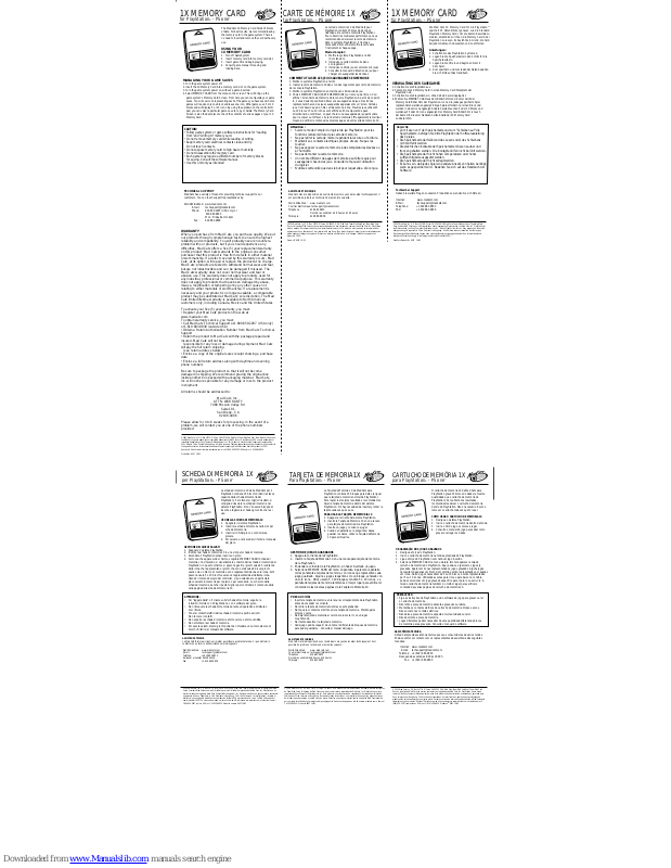 contenido de las diversas páginas de la Tarjeta de Memoria 1X.