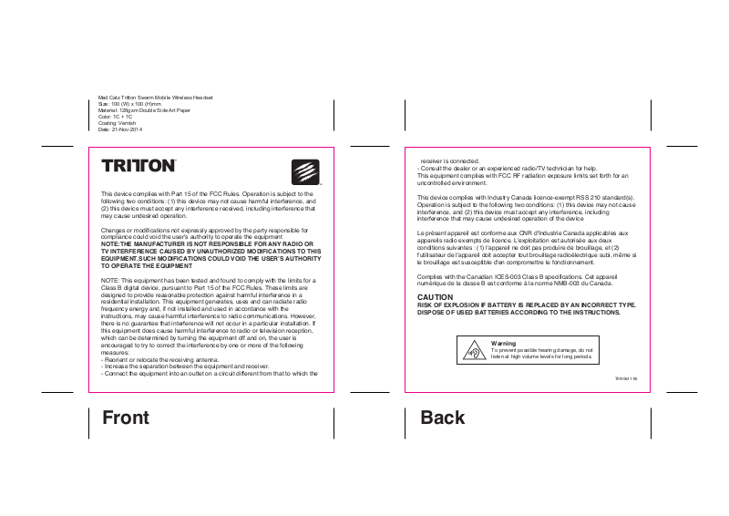 RISK OF EXPLOSION IF BATTERY IS REPLACED BY AN INCORRECT TYPE.