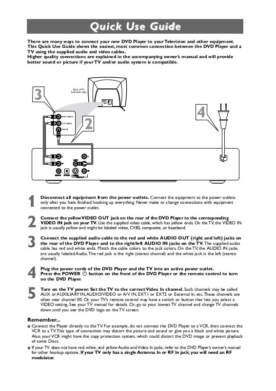 Connect the yellow VIDEO OUT jack on the rear of the DVD Player to the corresponding