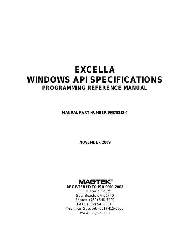 1710 Apollo Court, Seal Beach, CA 90740 MagTek Part Number 99875313-4