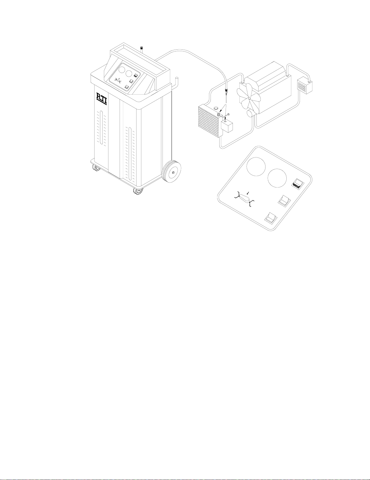 connect these tanks to the MCX-2. A green hose connects to the small New Coolant