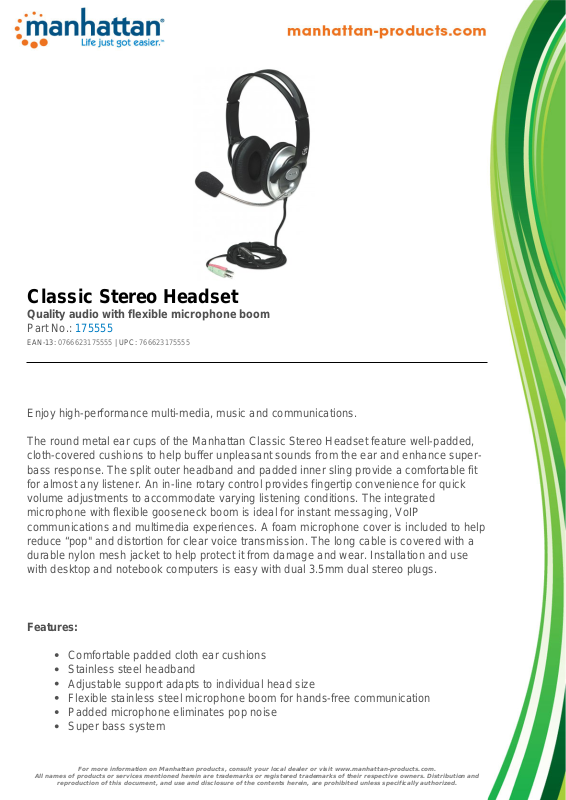 For more information on Manhattan products, consult your local dealer or visit www.manhattan-products.com.