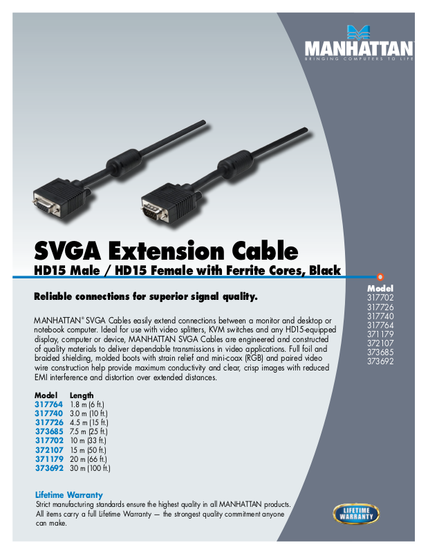 display, computer or device, MANHATTAN SVGA Cables are engineered and constructed