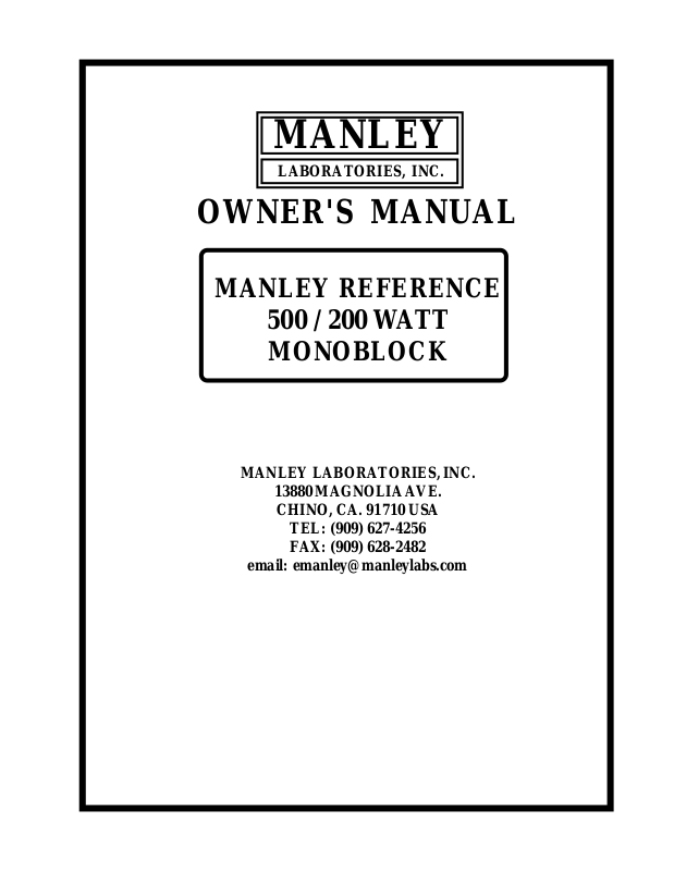 The MANLEY 500/200 is equipped with a SOFT-START circuit which lessens the initial stress the amplifier