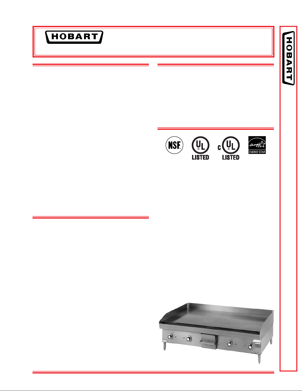 with a 1⁄2" thick polished steel griddle plate. Coldrolled steel 3" high splatter guard welded to griddle