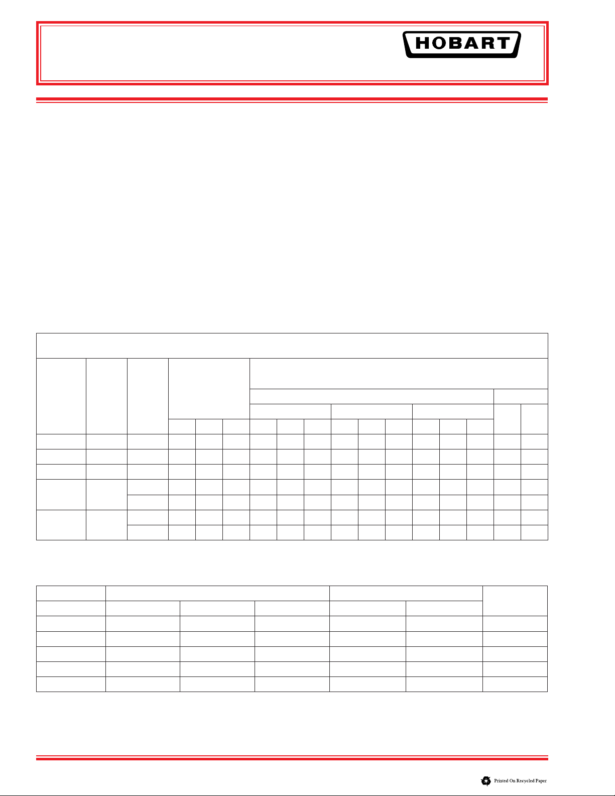 As continued product improvement is a policy of Hobart, specications are subject to change without notice.