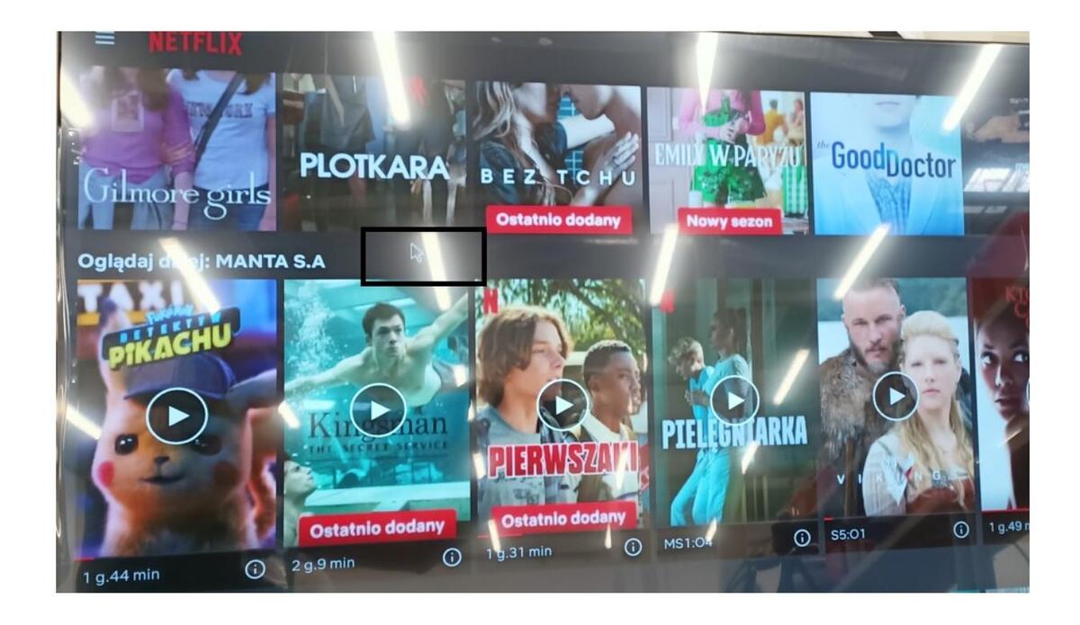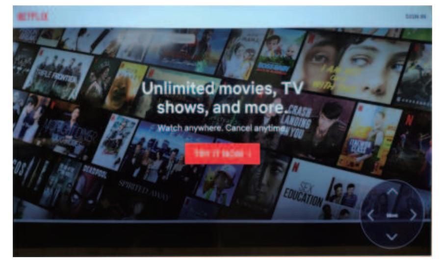 8. Możesz w pełni zacząć korzystanie z aplikacji Netflix. Pamiętaj sterowanie odbywa się za pomocą myszy, którą uruchamiamy na pilocie przyciskiem SIZE/MOUSE. Musi pojawić się kursor myszy na ekranie