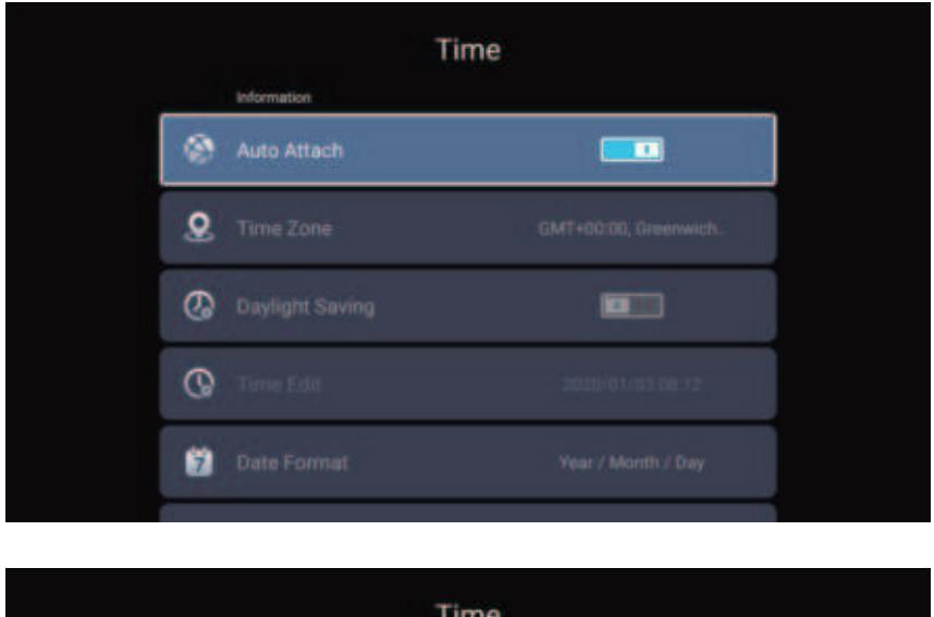Naciśnij lewo/prawo aby wybrać strefę czasową.