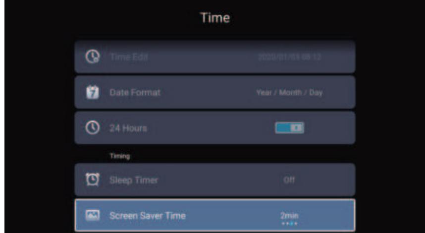 Naciśnij przyciski nawigacji i wybierz Samowyłączenie, następnie nawiguj aby wybrac Wył /15min/30min/45min/60min/90min/120min/240min.