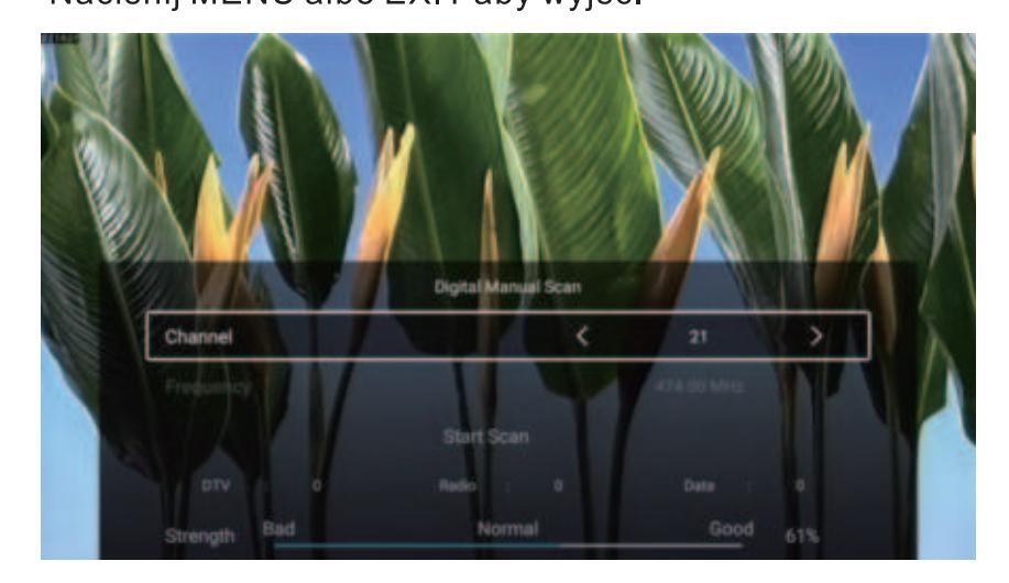 się wysokie budynki lub góry. Możesz dostosować obraz ręcznie: zapoznaj się z instrukcją lub dostosuj ustawienie anteny zewnętrznej. |